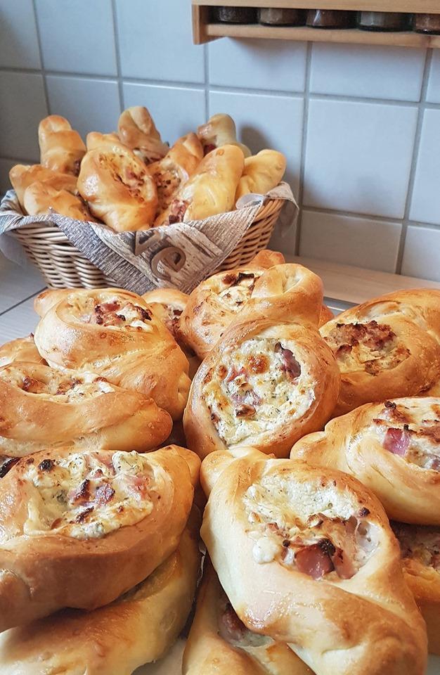 Αφού φουσκώσουν ψήνουμε σε προθερμασμένο φούρνο στους 180 για 20 λεπτά αφού πρώτα τα αλείψουμε με αυγό.Είναι έτοιμα μόλις αρχίσουν να ροδίζουν!