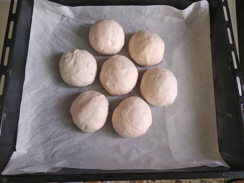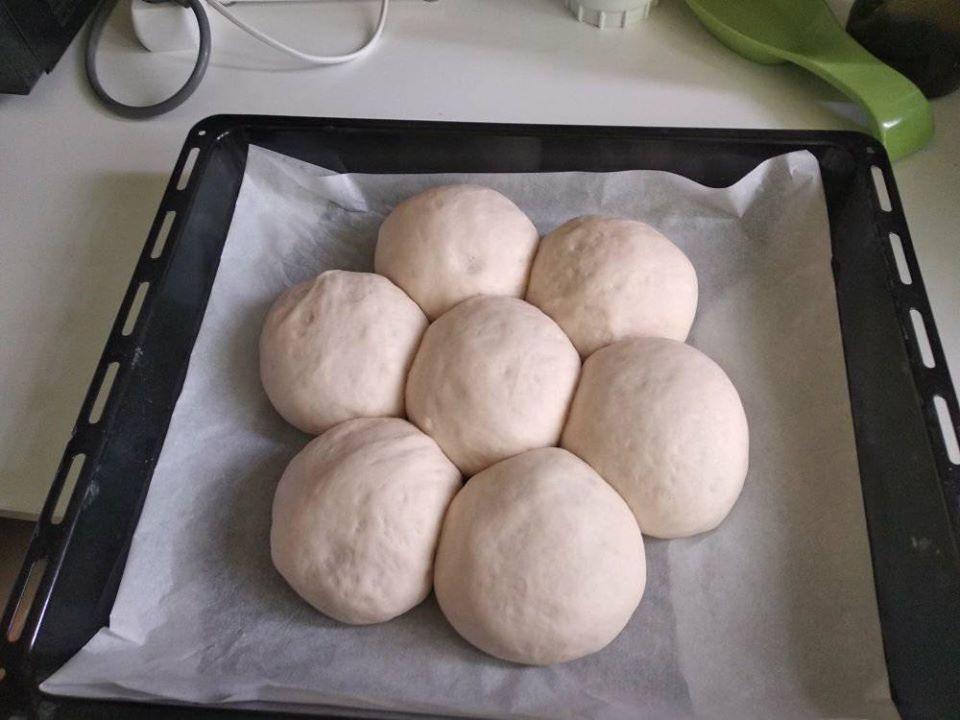 Προτιμώ φρέσκο γάλα αλλά και με αραιωμένο εβαπορέ γίνεται.Η αραίωση πρέπει να γίνει με κρύο νερό. Σαν ζεστό μέρος εγώ χρησιμοποιώ τον φούρνο στους 30 βαθμούς. ΠΡΟΣΟΧΗ το αλάτι το βάζουμε προς το τέλος γιατί υπάρχει πιθανότητα να εξουδετερώσει την μαγιά και να μην φουσκώσει η ζύμη μας. Οι αναλογίες είναι ακριβώς όπως πρέπει. Δεν θα χρειαστεί ούτε άλλο νερό ούτε άλλο αλεύρι. Αν η ζύμη κολλάει χτυπήστε 2-3 λεπτά ακόμα. Όσο πιο πολύ χτυπηθεί στο ζύμωμα τόσο πιο αφράτο θα βγει.Με το χτύπημα σπάει η γλουτένη από το αλεύρι και κάνει το ψωμί αφράτο. Η ζύμη θα βγει περίπου 1050-1100 γραμμάρια. Επειδή εγώ προτιμώ μαργαρίτα φτιάχνω 7 “μπαλάκια” των 150 γραμμαρίων. Μπορούμε να τα κάνουμε και μπαγκέτες για σάντουιτς των 5 των 210 γραμμαρίων ή 3 φραντζολάκια των 350 γραμμαρίων. Τα χρησιμοποιώ και σαν ψωμάκια για burger. Αν σας δυσκολέψει στο πλάσιμο λαδώστε ελαφρά τα χέρια σας με λίγο ελαιόλαδο η μαργαρίνη (βιταμ). Τα έχω φτιάξει και με φέτα και με ελιά. Απλά ενσωματώνουμε στην ζύμη. Αν τα θέλουμε γεμιστά τότε ανοίγουμε την ζύμη με τα χέρια ή με πλάστη και κλείνουμε προσεχτικά με το κλείσιμο να είναι από την κάτω μεριά. Η γέμιση να είναι κρύα για να μην λασπώσει το ψωμάκι μας. Αν δεν έχουμε λαδόκολλα απλά πασπαλίζουμε με μπόλικο αλεύρι την επιφάνεια του ταψιού. ΟΧΙ λάδι γιατί θα πικρίσει.. Όταν κρυώσουν πολύ πολύ καλά, αν θέλουμε τα βάζουμε κλεισμένα αεροστεγώς στην κατάψυξη και έχουμε πάντα φρέσκο ψωμάκι.