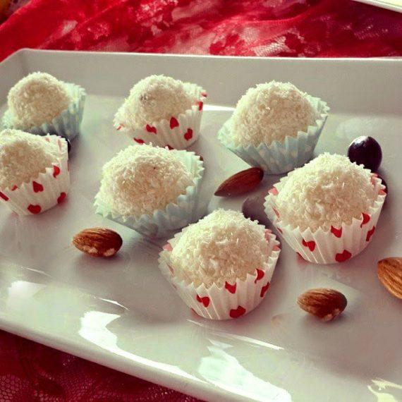 Σε μπολ ρίχνουμε το γάλα και με ένα κουτάλι ρίχνουμε και ανακατεύουμε την καρύδα να γίνει ένα σφιχτό μείγμα και να πλάθεται. Το βάζουμε στο ψυγείο για μία ώρα και μετά πλάθουμε μπαλάκια ομοιόμορφα και τα κυλάμε στο υπόλοιπο ινδοκάρυδο.