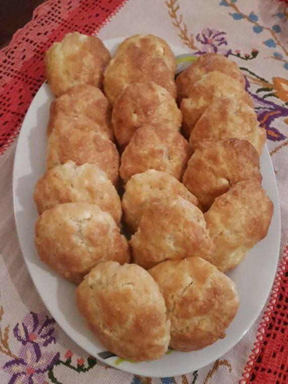 Εκτέλεση Ανακατεύετε όλα τα υλικά σε ένα μπώλ μέχρι το μείγμα να γίνει ρευστό (να κολλάει λίγο στο χέρι). Πλάθουμε τη ζύμη σε μικρά μπαλάκια, τα τοποθετούμε σε αντικολλητικό χαρτί και αλείφουμε από πάνω με τον κρόκο του αυγού για να γυαλίζουν. Αν ο φούρνος είναι αερίου, ψήνουμε στους 160 βαθμούς για μισή ώρα ενώ αν η κουζίνα είναι ηλεκτρική, ψήνουμε στους 180 βαθμούς για 20 λεπτά.