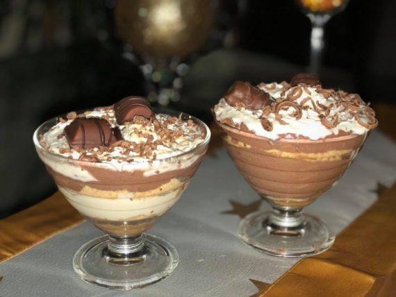 Βάζω από λίγο στα ποτηράκια! Χτυπάω με το μίξερ το γαλα με τη κρέμα για 5 λεπτά, βάζω πάνω από τα μπισκότα τη κρέμα βανίλια μετά πάλι μπισκότα και κρέμα σοκολάτα!!!
