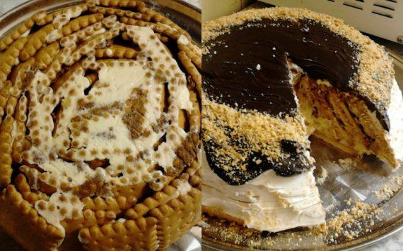 Μία πρωτότυπη, εντυπωσιακή και πολύ εύκολη Τούρτα μπισκότου με διπλή κρέμα !!!! Πραγματικά θα εντυπωσιάσει με την εμφάνιση και τη γεύση της!