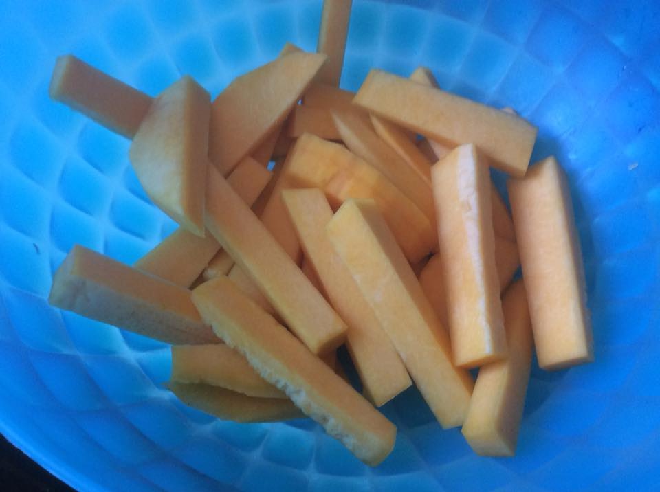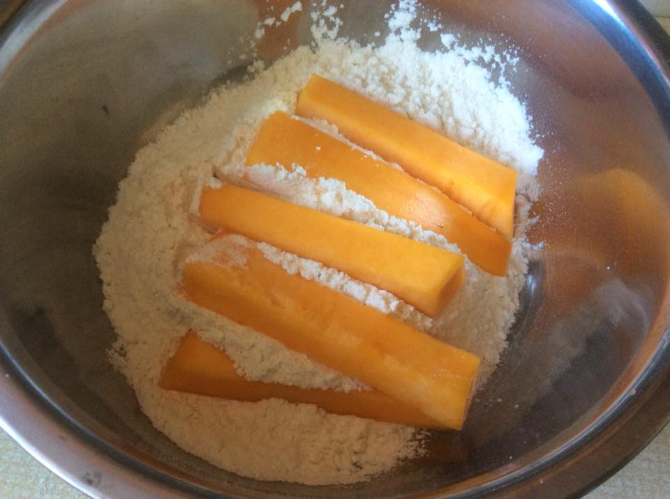 Εκτέλεση Έκοψα την κολοκύθα σε στικς, τα έβρεξα ελαφρώς, τα αλάτισα, τα αλεύρωσα και τα τηγάνισα Μμμμμμιαμ,όνειρο!!!