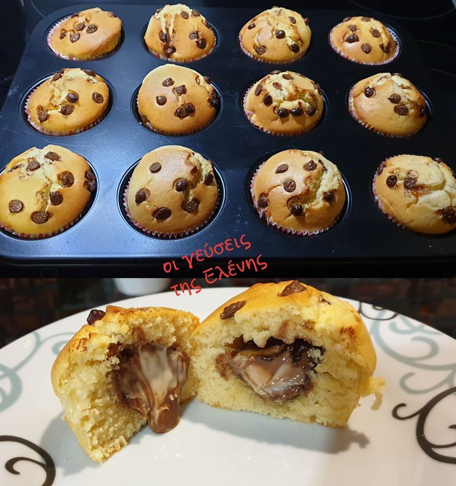 Ατομικά κεκάκια βανίλιας γεμιστά με ανάμεικτη σοκολάτα και κομματάκια σοκολάτας στο γαρνίρισμα. Αυτά τα μάφινς γίνονται εύκολα και γρήγορα και είναι ιδανικά για κέρασμα στο σχολείο. Τα παιδιά θα τα λατρέψουν και θα τα ζητάνε συνεχώς. Με τη σοκολάτα της επιλογής σας για γέμιση θα γίνουν ανάρπαστα!