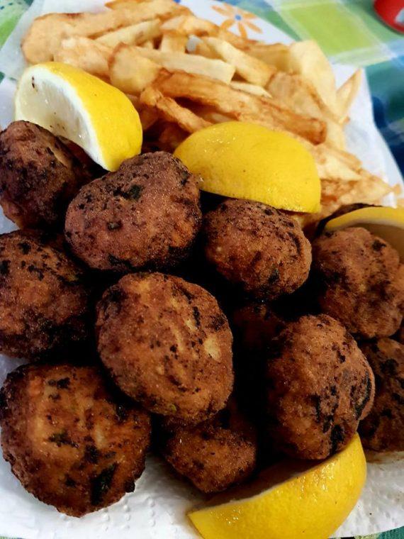 Βάζουμε όλα τα υλικά σε ένα μεγάλο μπολ και ζυμώνουμε πολύ καλά, αφού ομογενοποιηθούν όλα τα υλικά το βάζουμε για καμιά ώρα στο ψυγείο (αν έχουμε χρόνο). Μέτα πλάθουμε τα κεφτεδάκια στο μέγεθος που θέλουμε και αλευρώνουμε. Ζεσταίνουμε το λάδι στο τηγάνι και τηγανίζουμε τα κεφτεδακια μας. Αν θέλουμε συνοδεύουμε με τηγανίτες πατάτες.
