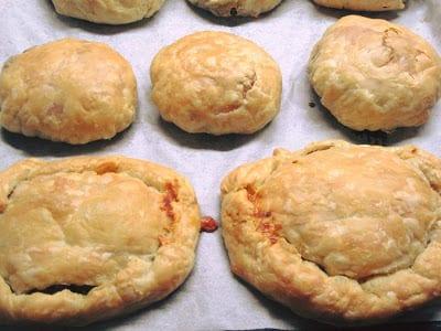 Ζυμώνω όλα μαζί τα υλικά να γίνει ένα πολύ ωραίο μείγμα το αφήνω στο ψυγείο για 15 λεπτά και φτιάχνω μικρά μπιφτεκάκια τα οποία τα κόβω με κουπ πατ, προσπαθώ να τα κάνω όσο μπορώ πιο λεπτά τα προ ψήνω λιγάκι.. Παίρνω ένα φύλλο σφολιάτα αλείφω με κέτσαπ ρίχνω τυρί γκούντα και ένα μπιφτέκι . Κλείνω και ψήνω σε φούρνο προθερμασμένο στους 180 για περίπου μία ώρα μέχρι να ψηθούν καλά.