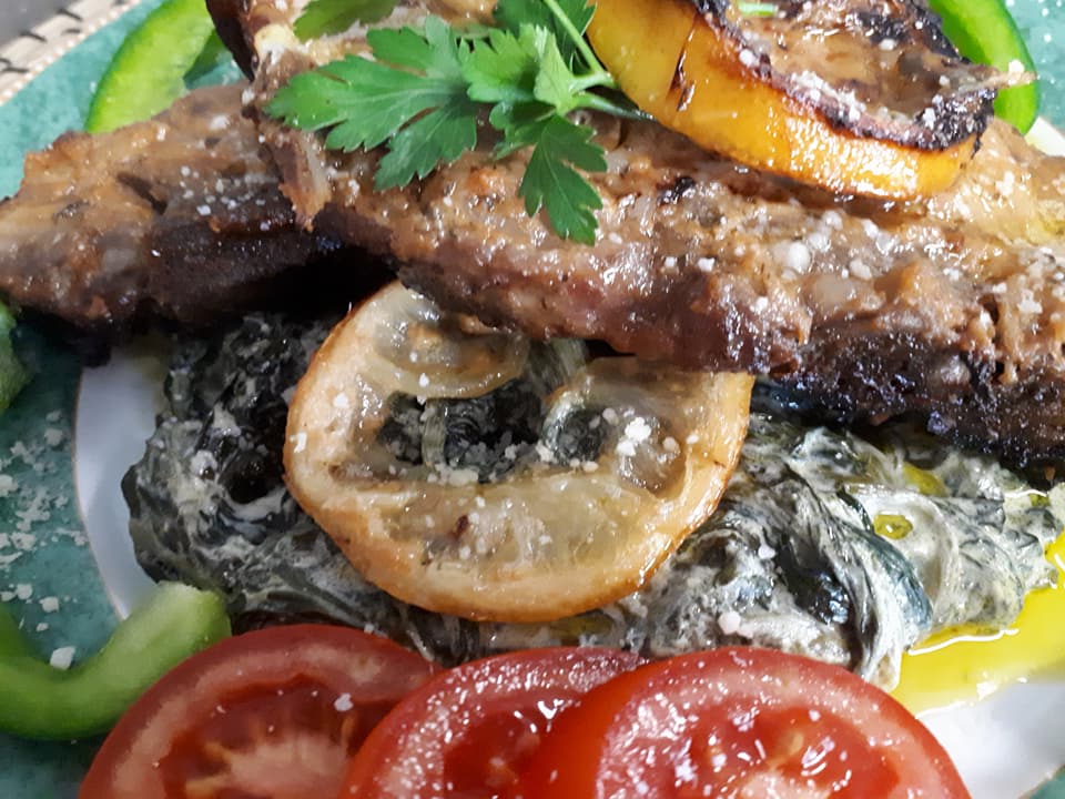 Σερβίρεις το σπανάκι και από πάνω τις μπριζόλες.