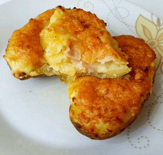 -5 πατάτες -7 φέτες ζαμπόν -200γρ κίτρινα τυριά που λιώνουν -1κτσ. Βούτυρο -60ml γάλα φρέσκο – αλάτι, πιπέρι