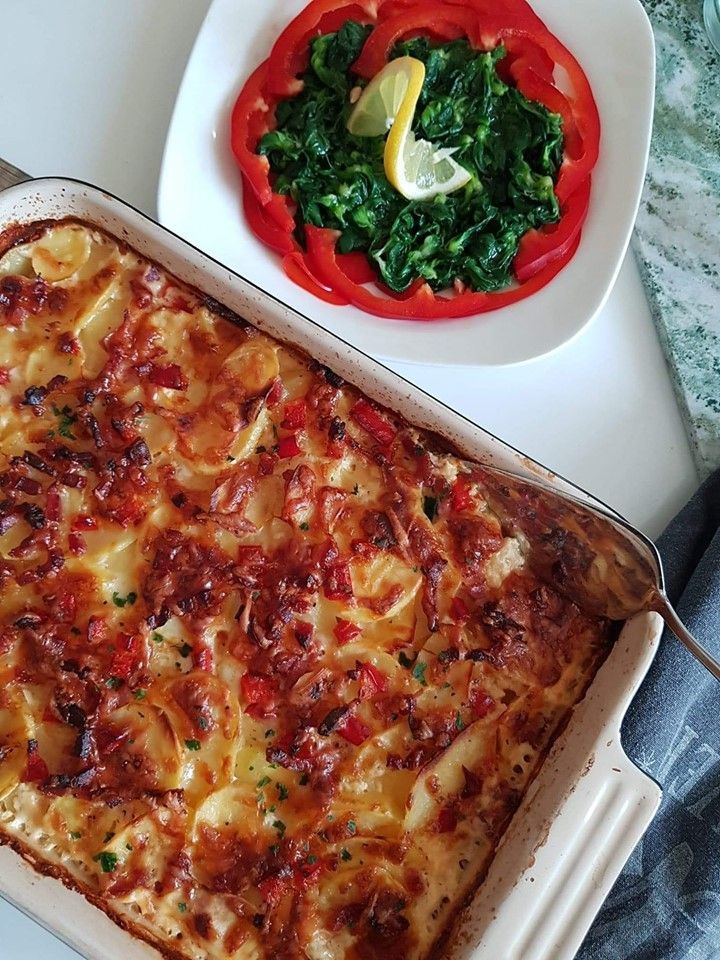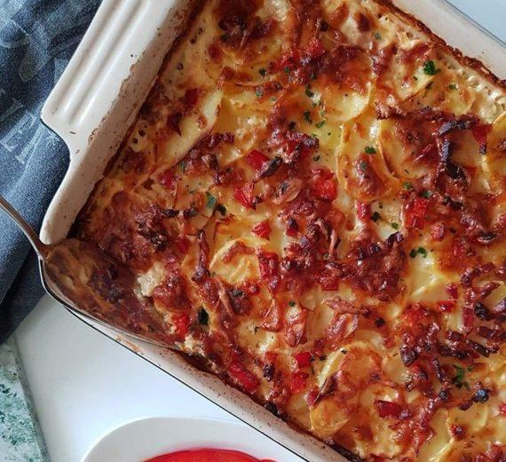 Πατάτες ογκρατεν με ψιλοκομμένη κόκκινη πιπεριά και μπέικον! Το τέλειο και πολύ εύκολο ορεκτικό για το επίσημο ή οικογενειακό τραπέζι!