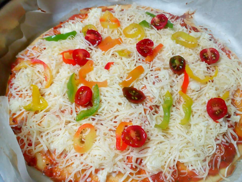 Ενώνουμε όλα τα υλικά μαζί και φτιάχνουμε ένα σφιχτό χυλό….τον απλώνουμε σε λαδόκολλα σε 3δυαρι ταψί….το ψήνουμε στους 150′ για 10′ Απλώνουμε σάλτσα ντομάτας με λίγη ρίγανη, τυριά της αρεσκείας μας, αλαντικά μανιτάρια πιπεριές και ότι άλλο θέλουμε… Ψήνουμε για άλλα 10 λεπτά μέχρι να ροδίσει και έτοιμη.