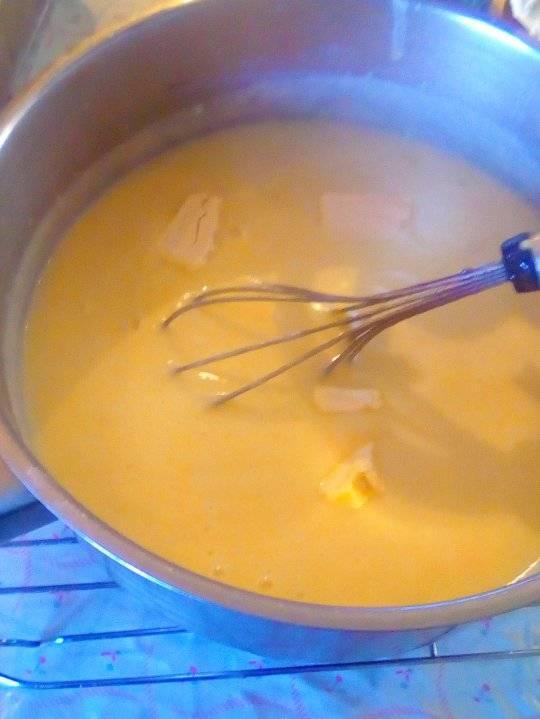 Βάζουμε 1 κιλό γάλα με 1 φλιτζάνι τσαγιού ζάχαρη να ζεσταθεί . Σε ένα μπολ βάζουμε 4 αυγά,τα χτυπάμε με σύρμα και ρίχνουμε μέσα 120 γραμμάρια αλεύρι να γίνει χυλός.