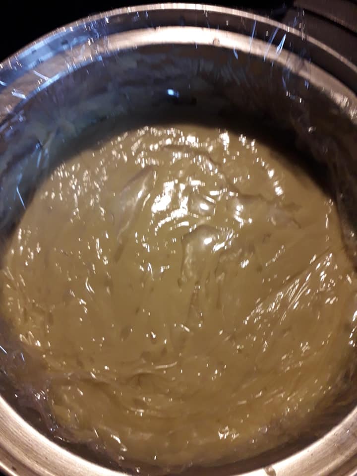 Σε κατσαρολάκι εχουμε ήδη φτιάξει την κρέμα για να έχει παγώσει. 500γρ.γαλα καρύδας συμπυκνωμένο, 30γρ.κορν φλαουερ,4 αυγα ολοκληρα,90γρ.ζαχαρη. Τα νακατευουμε πρωτα καλά και μετα την βαζουμε στην φωτια ανακατευοντας καλα μέχρι να πήξει.