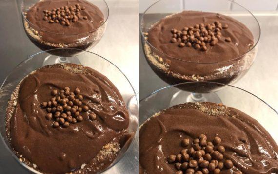 Έβρασα μια κρέμα στιγμής σοκολάτα. Προσθεσα δυο κουταλιές μερέντα λίγο μπέιλις και τα άφησα να βράσουν να δέσουν οι γεύσεις. Προσθεσα τριμμένο μπισκότο και σοκολατάκια γεμιστά με μπισκότο ..απλό και νόστιμο !!