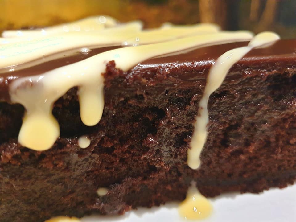 Μόλις είναι έτοιμο το βγάζουμε και αφήνουμε να κρυώσει ελαφρά, περίπου 10 λεπτά. Κόβουμε σε κομμάτια 12 και περιχύνουμε με το σιρόπι. Αφήνουμε να απορροφήσει το σιρόπι. Στο μεταξύ ετοιμάζουμε το γλασο. Σπάμε τη κουβερτούρα σε μπολ σε κομματάκια. Σε μικρό κατσαρολάκι ζεσταίνουμε τη κρέμα γάλακτος μέχρι να αρχίσουν να φαίνονται οι πρώτες φυσαλίδες. Αποσύρουμε και περιχύνουμε τη κουβερτούρα. Ανακατεύουμε να λιώσει καλά. Αφού έχει τραβήξει το γλυκό μας το σιρόπι περιχύνουμε με το γλάσο. Σερβίρουμε με παγωτό!!!