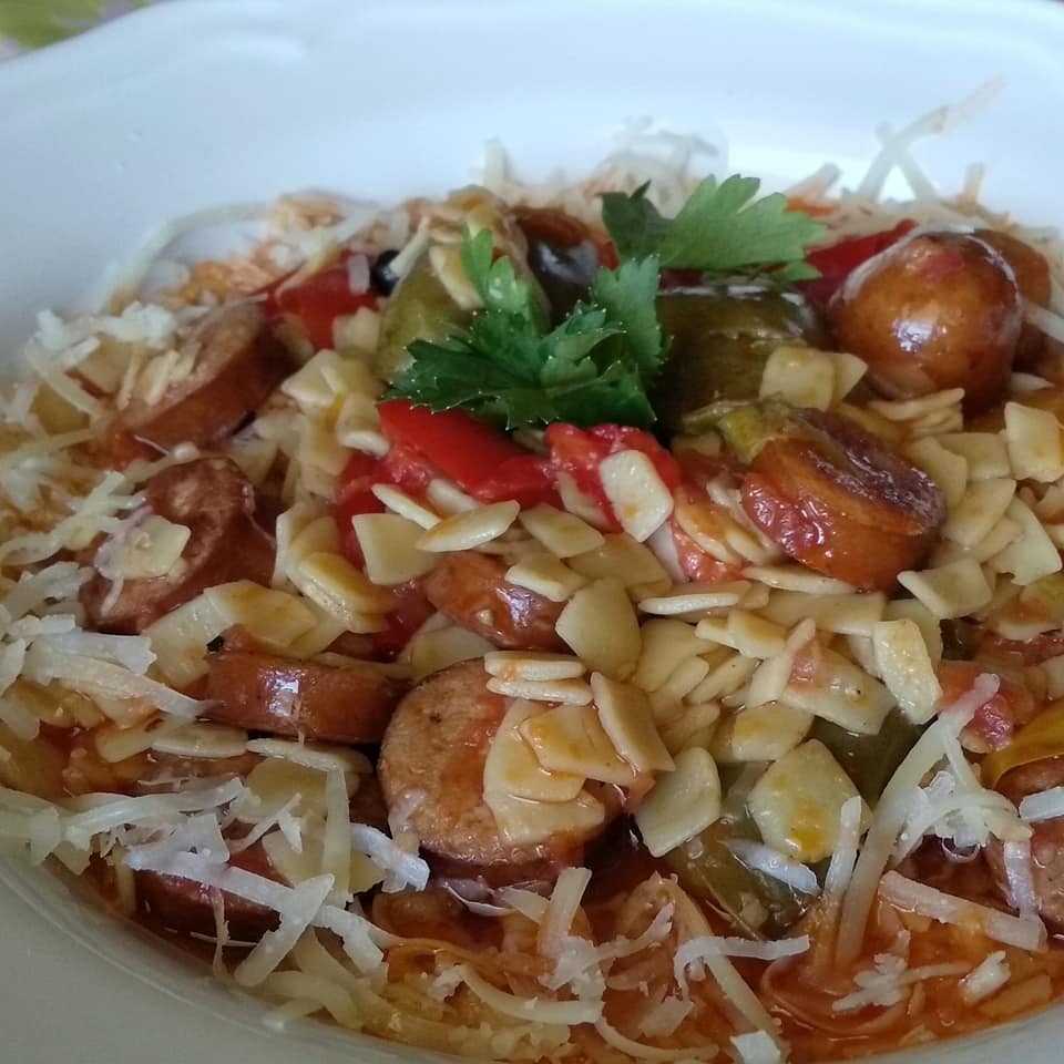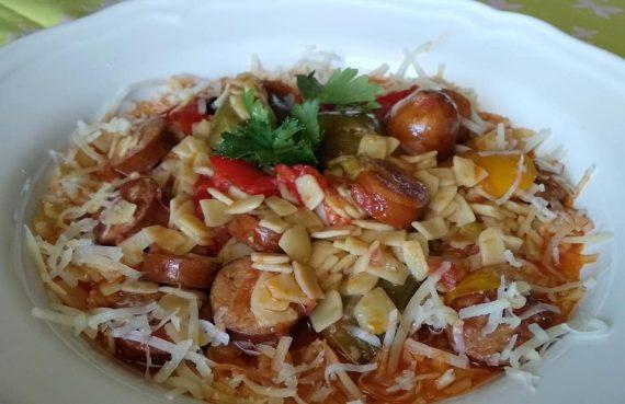 Σπετζοφάι με πιπεριές λουκάνικο και χυλοπιτάκι στο φούρνο. Γίνεται εύκολα. Ένα πιάτο της τελευταίας στιγμής που ξετρελαίνει με τη γεύση του! Πλημμυρίζει το σπίτι μυρωδιές! Δοκιμάστε να φτιάξετε την παρακάτω συνταγή και θα γίνει η αγαπημένη σας!