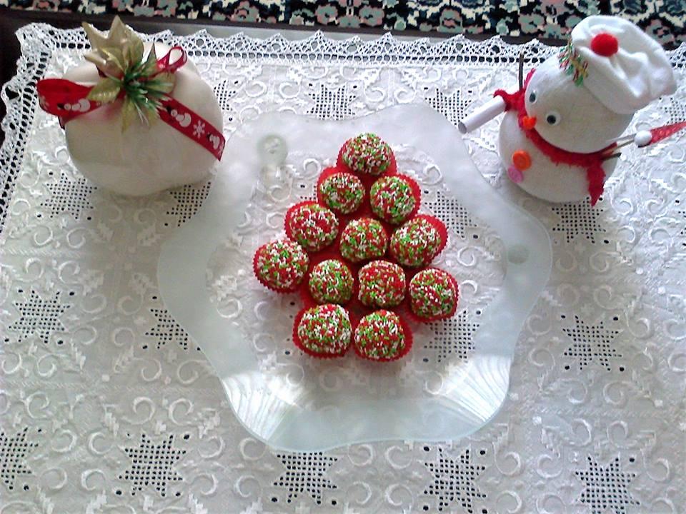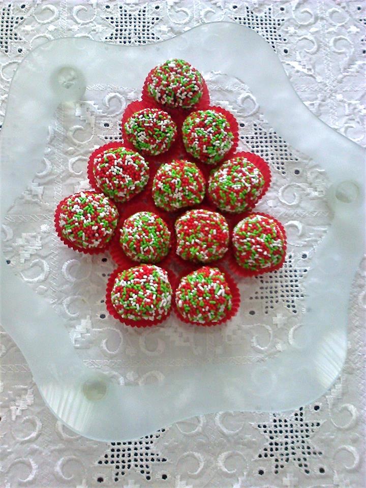 Χριστουγεννιάτικα τρουφάκια με μπισκότο, καρύδια και ολόκληρα φουντούκια. Αυτά τα πολύχρωμα τρουφάκια είναι εύκολα και πολύ νόστιμα! Στολίστε τα στον μπουφέ σας και να είστε σίγουροι ότι δεν θα μείνει ούτε ένα. Δοκιμάστε να τα φτιάξετε με τα παιδιά σας φέτος τα Χριστούγεννα!