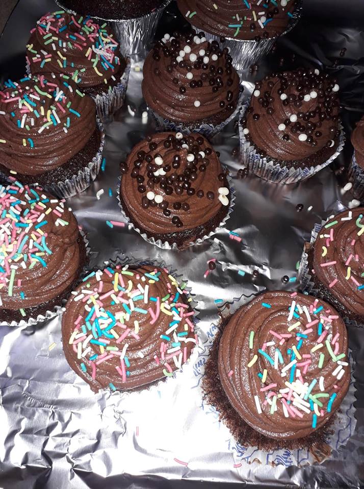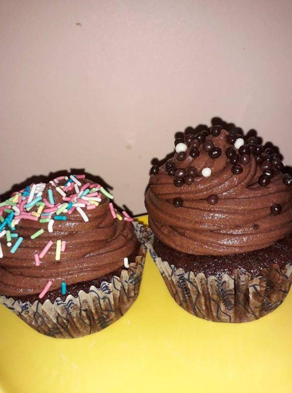 Σε ένα μπολ χτυπάμε στο μίξερ τη ζάχαρη με το βούτυρο κ έπειτα ρίχνουμε τις βανίλιες,τα αυγά,το κακάο,το κονιάκ κ ανακατεύουμε να ενσωματωθούν καλά. Σε ένα άλλο μπολ κοσκινίζουμε το αλεύρι, το αλάτι κ το μπεικιν κ τα ρίχνουμε κ αυτά στο μείγμα σταδιακά με το γάλα. Ανακατεύουμε το ξίδι με τη σόδα κ ρίχνουμε κ αυτά μέσα κ χτυπάμε σε χαμηλή ταχύτητα να ομογενοποιηθούν τα υλικά. Γεμίζουμε τις θήκες για τα cupcakes κ ψήνουμε σε προθερμασμένο φούρνο στους 200 για 20 λεπτά. Φτιάχνουμε τη κρεμά ζαχαροπλαστικής σύμφωνα με τις οδηγίες κ γεμίζουμε ένα κορνέ κ μόλις έχουν βγει απ το φούρνο κ χουν κρυώσει τα cupcakes, γεμίζουμε την επιφάνεια κ τέλος γαρνίρουμε με τρούφα ή ζαχαρωτά!!!!
