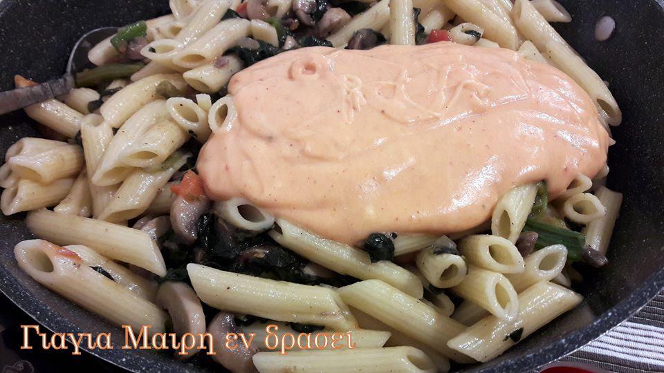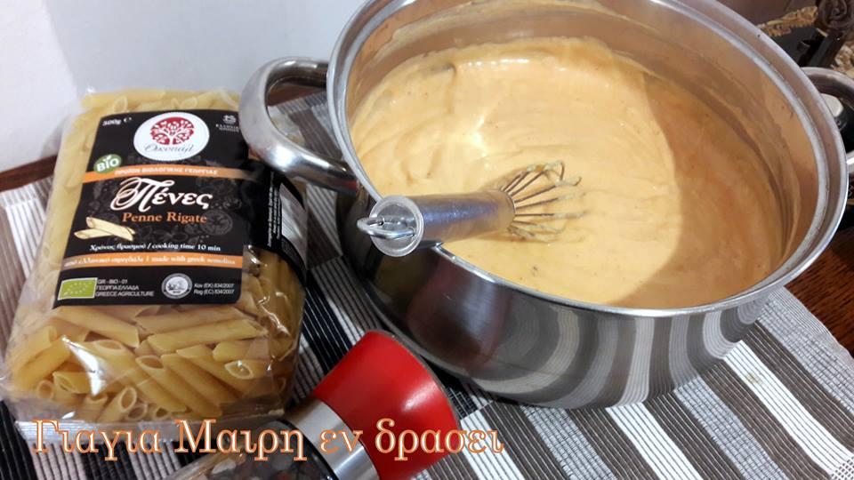 Όταν φύγουν όλα τα υγρά από το σοτάρισμα προσθέτουμε και τις πένες που από πριν τις βράσαμε σύμφωνα με τις οδηγίες βρασμού σε αλατισμένο νερό. Ανακατεύουμε όλα μαζί τα υλικά και τα αφήνουμε να κρυώσουν. Σε μια κατσαρολίτσα βάζουμε το βούτυρο να λιώσει και προσθέτουμε το κορν φλάουρ.