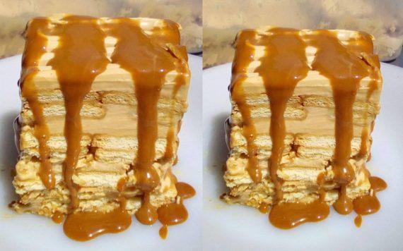 ΣΥΝΤΑΓΗ ΥΛΙΚΑ: 3 πακέτα μπισκότα πτι μπερ, 1000 γραμμάρια κρέμα γάλακτος πλήρες πάρα πολύ παγωμένη, 6 κουταλιές της σούπας γεμάτες καραμελωμένο ζαχαρούχο γάλα, 200 ml γάλα φρέσκο.