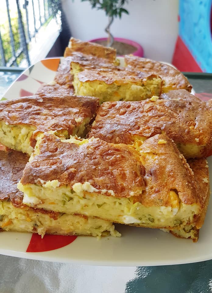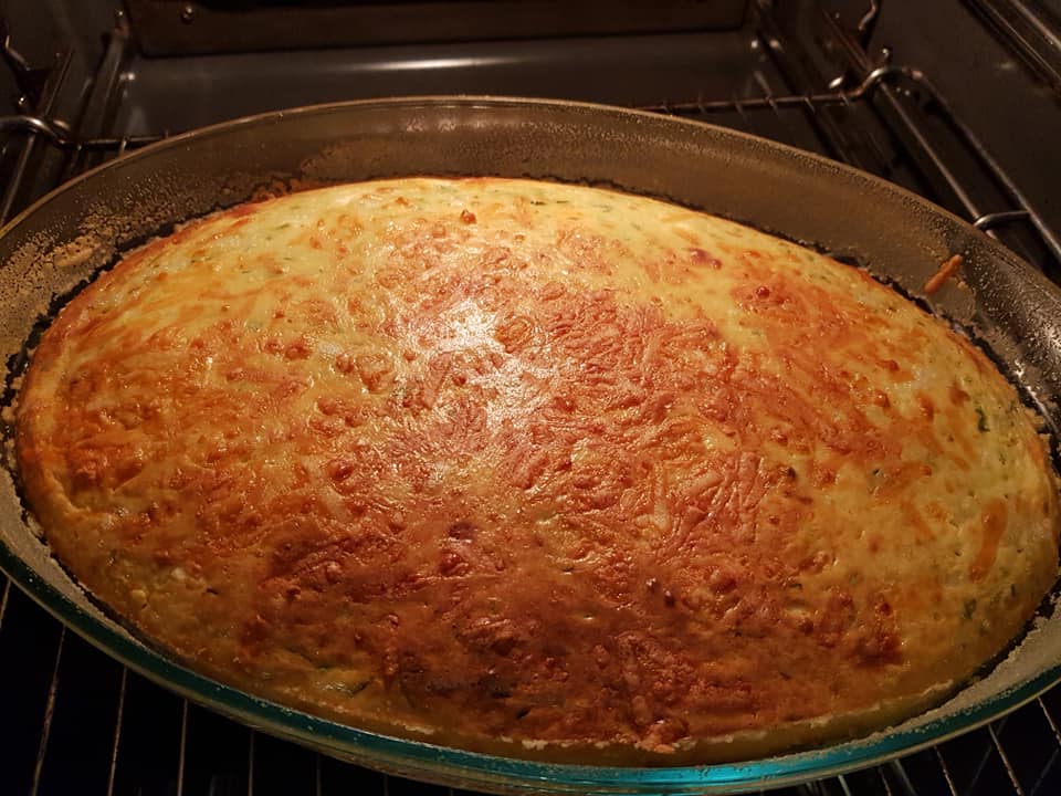 Τσιγαρίζω όλα τα λαχανικά ένα ένα με λίγο ελαιόλαδο τη φορά. Χτυπάω τα αυγά με το γάλα και το γιαούρτι, ρίχνω σιγά σιγά το αλεύρι και το σιμιγδάλι, αφού έχουν κρυώσει τα λαχανικά μου τα βάζω και αυτά και τέλος βάζω τα τυριά. Βουτυρώνω πολύ καλά ένα ταψάκι η πυρέξ και πασπαλίζω με λίγο σιμιγδάλι βάζω το μείγμα μου και το ψήνω αέρα στους 190 μέχρι να ροδίσει 45 με 50 λεπτά και τα τελευταία 5 λεπτά μόνο στις κάτω αντιστάσεις.