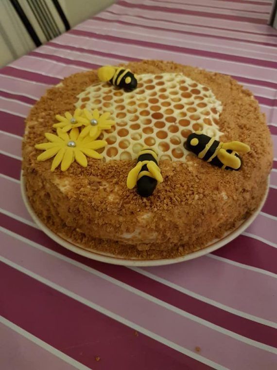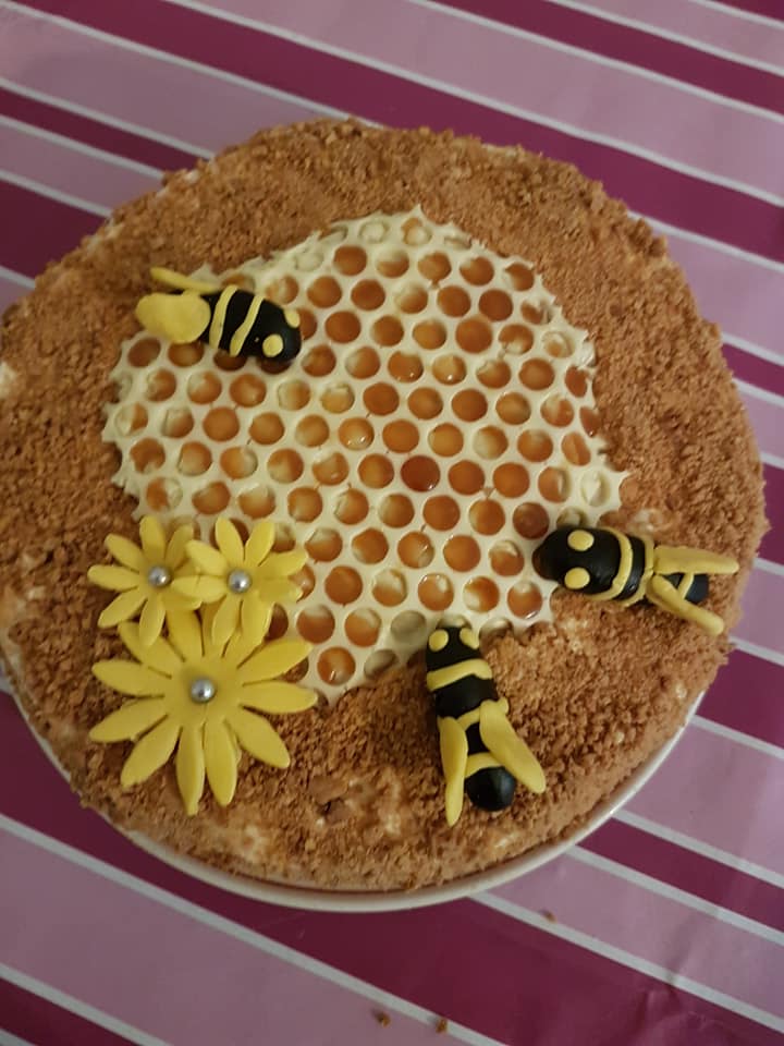 Εγώ την διακόσμησα την τούρτα από μέλισσες αφού γεύση της ζύμης είναι μέλι)))