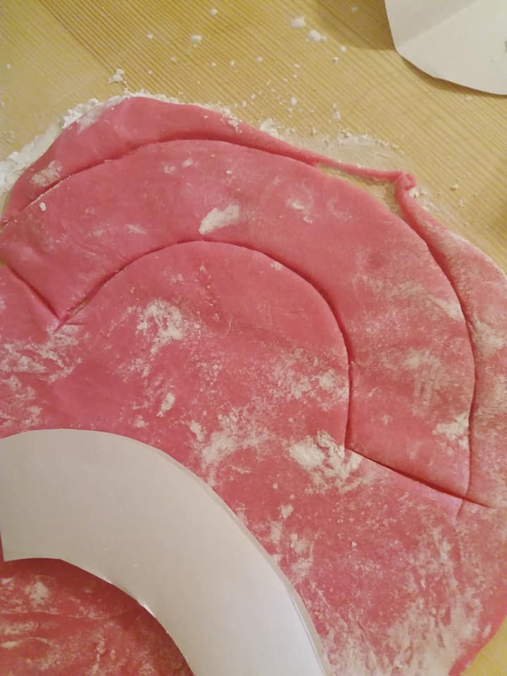 Τα ζυμώνουμε και μπορούμε να προσθέσουμε χρώμα ζαχαροπλαστικής. Εγώ χρησιμοποίησα 1 κουτί 600γρ. Και 1 σακουλάκι αχνη ζαχαρη όσο πάρει ώστε να μην κολλάει χέρια