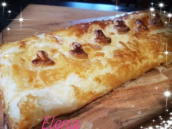 Κλείνετε τη σφολιατα σχηματιζοντας ενα ρολο, καλα, αφου γυρισετε τις άκρες και πιέσετε με τα δάκτυλα σας να κλείσει για να μην ανοίξει στο ψησιμο. Γυρνάτε προσεκτικά το κλείσιμο από την κάτω πλευρά. Διαλύσετε τον κρόκο με ελάχιστο νεράκι και αλειφετε το ρόλο. Ψήνετε σε προθερμασμένο φούρνο για περίπου στους 180°C για περίπου 30 λεπτά ή μέχρι να ροδίσει, να πάρει ωραίο χρώμα. Υπέροχη και για πρωινό!! Καλή επιτυχία!!