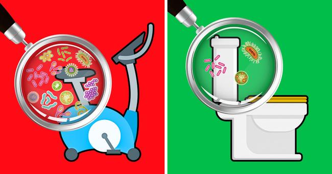 Η ομάδα της αξιόπιστης ιστοσελίδας Fitrated.com, έκανε έρευνα και ανακάλυψε πως ο κίνδυνος μόλυνσης σε ένα γυμναστήριο είναι πολύ μεγαλύτερος από ότι σε μια δημόσια τουαλέτα. Η μελέτη βρήκε 326 φορές περισσότερα βακτήρια στο γυμναστήριο από ότι σε οποιοδήποτε κάθισμα τουαλέτας.
