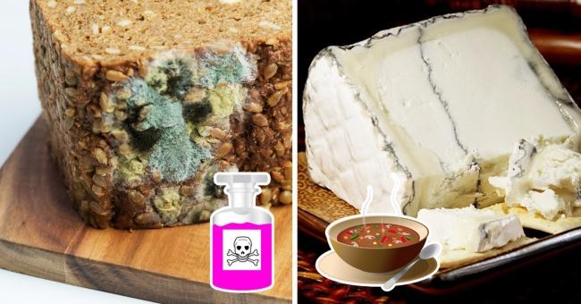 Η μούχλα είναι συνήθως ορατή, αλλά οι τοξίνες που παράγονται από αυτή και άλλους μύκητες – μυκοτοξίνες – είναι αόρατες και μπορούν να διεισδύσουν στα τρόφιμα . Έτσι, καλύτερα να μην κόψετε τη μούχλα, αλλά να πετάξετε ολόκληρο το κομμάτι. Τα τυριά όπως το μπρι ή το ροκφόρ είναι ασφαλή για κατανάλωση, επειδή η μούχλα έχει εισαχθεί σκόπιμα. Ωστόσο, εάν η μούχλα αυξάνεται μέσα στο τυρί τότε δεν πρέπει να το φάτε.