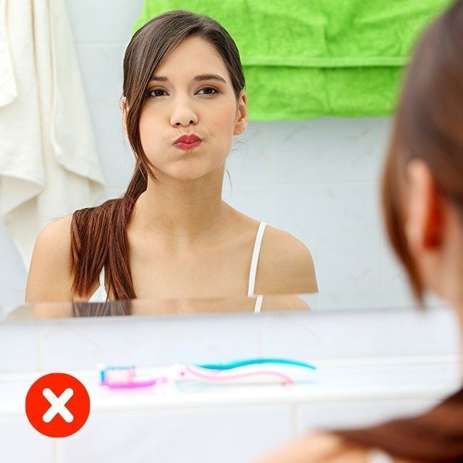 Αυτή η συνήθεια μπορεί να φαίνεται πολύ φυσιολογική, αλλά έχει δεχτεί κριτική από πολλούς οδοντιάτρους. Όταν βουρτσίζουμε τα δόντια μας αυτά καλύπτονται από ένα προστατευτικό στρώμα φθορίου, το οποίο ξεπλένεται με το νερό. Για να διατηρήσετε το θετικό αποτέλεσμα του βουρτσίσματος των δοντιών, ξεπλύνετε το στόμα σας με ειδικά διαλύματα χωρίς αλκοόλ.
