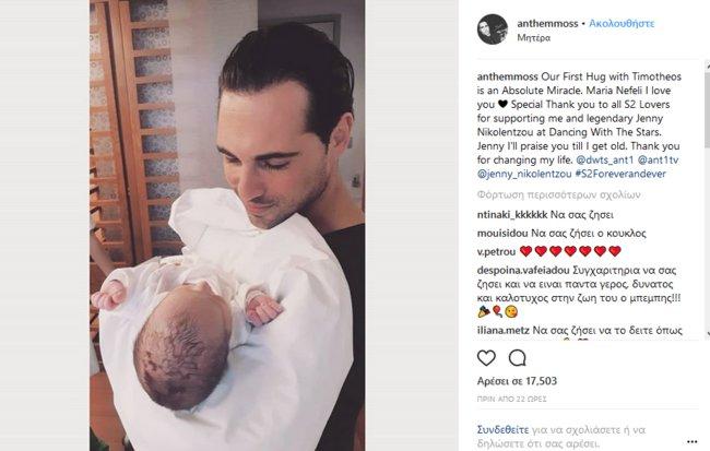 Ο Άνθιμος Ανανιάδης έγινε πρώτη φορά πατέρας και μοιράστηκε αυτή την πρώτη φωτογραφία του γιου του, Τιμόθεου, αλλά και την αγάπη για τη 19χρονη σύζυγό του, Μαρία Νεφέλη, πριν από λίγες μέρες.