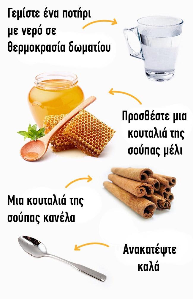 Η κανέλα μειώνει τα επίπεδα σακχάρου στο αίμα, βοηθά στην πέψη και βελτιώνει το μεταβολισμό. Οι επιστήμονες λένε ότι η αντικατάσταση της ζάχαρης με μέλι μπορεί να αποτρέψει την αύξηση του σωματικού βάρους.