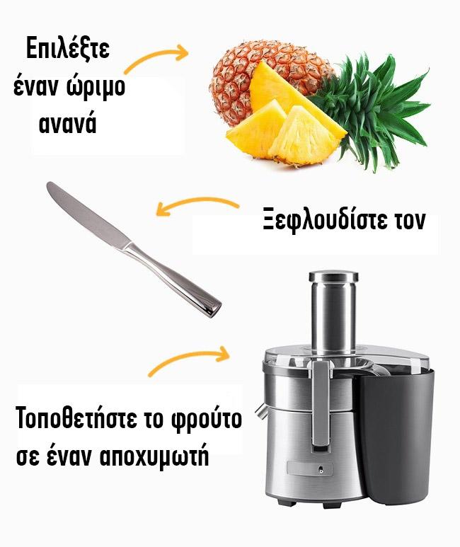 Ο χυμός ανανά θα σας γεμίσει με πολλή βιταμίνη C και θα βοηθήσει στην απομάκρυνση των επιπλέον υγρών. Συμβαίνει συχνά το υπερβολικό υγρό να είναι η αιτία της αύξησης του σωματικού βάρους και όχι το λίπος.