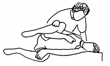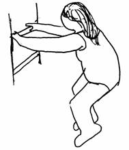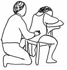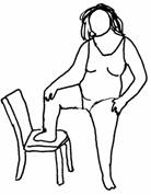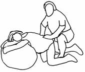Κατά τη διάρκεια των συστολών, επαναλαμβάνει κάμψεις των γοφών και του γόνατου προς το ίδιο πλάι, ανά 5 δευτερόλεπτα. Θα πρέπει να αισθάνεται τράβηγμα στο εσωτερικό μέρος αυτού του μηρού. Ποιο πόδι θα τοποθετήσει η γυναίκα στην καρέκλα, και προς τα πού θα κάνει τις κάμψεις, εξαρτάται από τη θέση του ινίου του μωρού. Αν αυτό δεν είναι γνωστό, όπου νιώθει πιο άνετα. Ο σύντροφος την βοηθάει να ισορροπήσει.