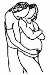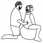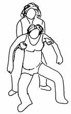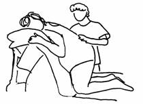 Η επίτοκος γυναίκα αγκαλιάζει το σύντροφο γύρω από το λαιμό, ή αφήνει τα χέρια της χαλαρά στο πλάι, με το κεφάλι της να ακουμπάει στον ώμο ή στο στήθος του. Ο σύντροφος συγκρατεί την γυναίκα με τα χέρια ενωμένα στην πλάτη της, έχοντας περάσει τα μπράτσα του κάτω από τις μασχάλες της.