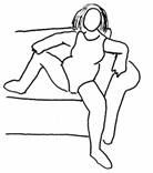 Προσφέρει τα ίδια με την όρθια θέση και επιπλέον ανακουφίζεται ο πόνος της μέσης. Αυτή η στάση προσφέρεται για μασάζ στη μέση της επιτόκου. Όρθια με το ένα γόνατο σε κάμψη και το πόδι πάνω σε μια καρέκλα, στο πλάι