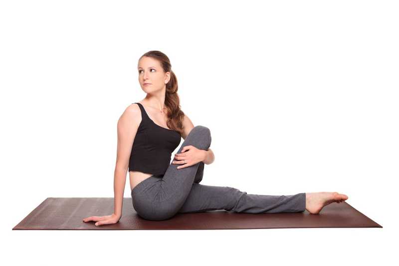 Καθίστε σε ένα άνετο στρώμα γυμναστικής ή στο πάτωμα, και στη συνέχεια, λυγίστε το αριστερό γόνατό σας, ανασηκώστε το και στρίψτε τον κορμό σας προς τα αριστερά. Στριφογυρίστε όσο πιο πολύ μπορείτε, και στη συνέχεια κρατήστε τη θέση αυτή για τριάντα δευτερόλεπτα. Μην ξεχνάτε τις σωστές αναπνοές. Έπειτα κάντε την ίδια άσκηση, λυγίζοντας τώρα το δεξί γόνατό σας.