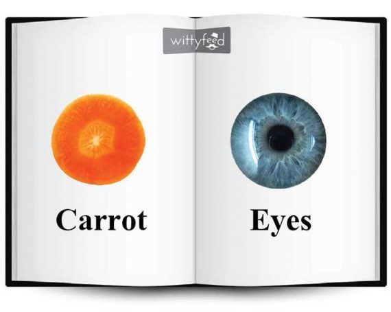Ένα κομμάτι καρότου μοιάζει αρκετά με το ανθρώπινο μάτι. Τα καρότα βοηθούν στην ενίσχυση της ροής του αίματος στα μάτια μας, βελτιώνοντας έτσι την όρασή μας. Το βήτα-καροτένιο που υπάρχει στα καρότα μετατρέπεται σε βιταμίνη Α που είναι απαραίτητη για υγιή μάτια.