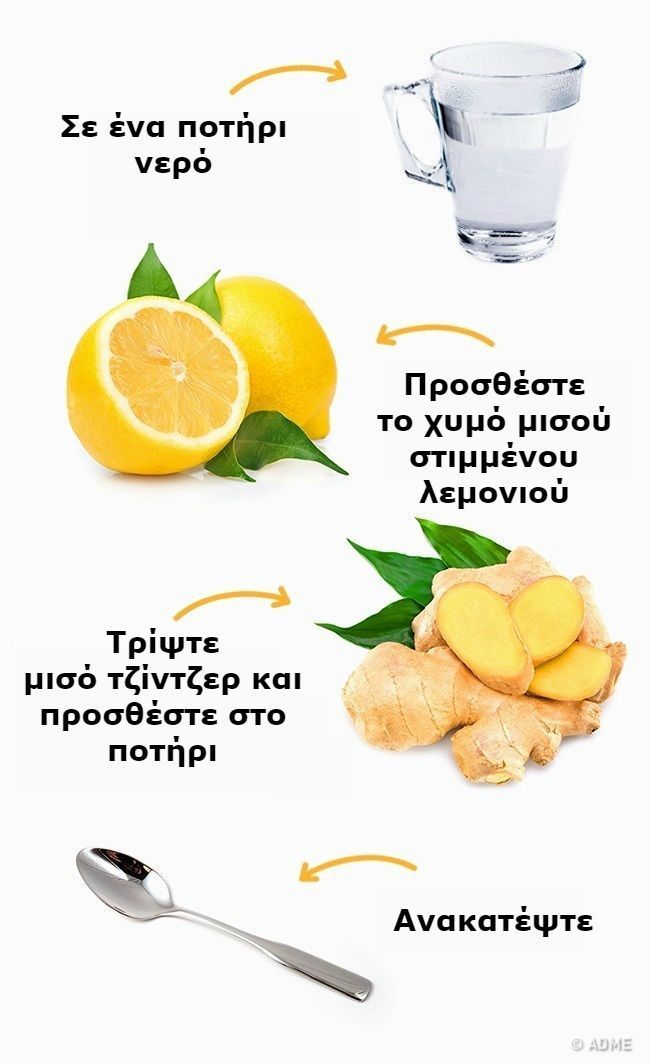 Πολλοί διαιτολόγοι πιστεύουν ότι το τζίντζερ είναι ένα εξαιρετικό μέσο για την απώλεια βάρους, διότι μειώνει το πρήξιμο, βοηθώντας στην απομάκρυνση των περιττών υγρών από το σώμα. Ο χυμός του λεμονιού διεγείρει τα νεφρά, προωθεί την ταχεία απομάκρυνση των τοξινών και ρυθμίζει την πέψη.