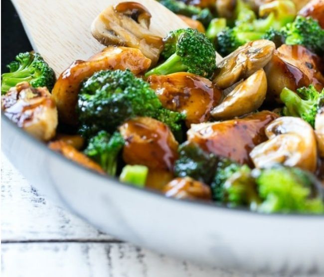- Περισσότερες πρωτεΐνες, φυτικές ίνες, σύνθετους υδατάνθρακες, τροφές πλούσιες σε πολυακόρεστα λιπαρά οξέα. Ένα καλό παράδειγμα είναι το πιάτο της φωτογραφίας: κοτόπουλο, μανιτάρια, μπρόκολο, του οποίου η διατροφική αξία υπολογίζεται σε 300 kcal ανά 100 g πρωτεΐνης, φυτικές ίνες, βιταμίνες και μέταλλα. Μπορείτε να βρείτε τη συνταγή αυτού του πιάτου εδώ.