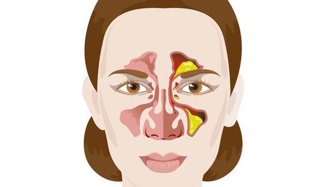 παχύρευστες βλεννοπυώδεις εκκρίσεις από τη μύτη, μπούκωμα , πυρετό, βήχα και πονοκέφαλο.