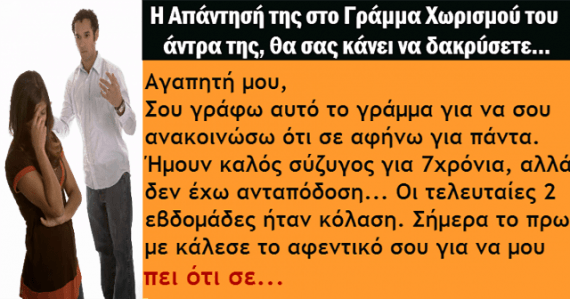 Ένας σύζυγος έγραψε αυτό το γράμμα στη γυναίκα του. Ήθελε να πάρει διαζύγιο. Δεν περίμενε ποτέ ότι αυτή θα ήταν η απάντησή της!