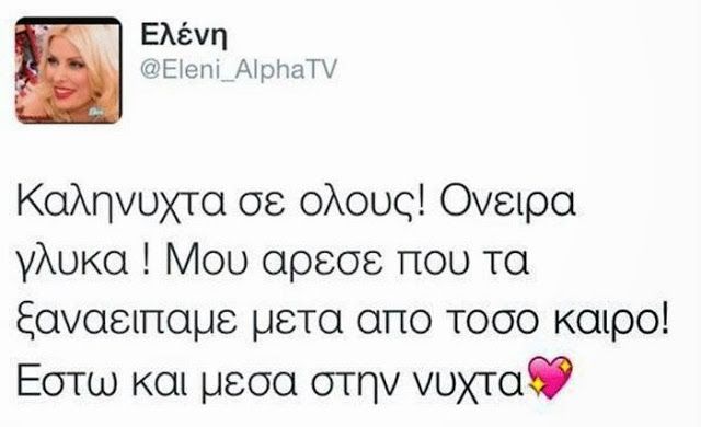 Στη συνέχεια, τους καληνύχτισε όλους λέγοντας: «Καληνύχτα σε όλους. Όνειρα γλυκά. Μου άρεσε που τα ξαναείπαμε μετά από τόσο καιρό. Έστω και μέσα στη νύχτα».