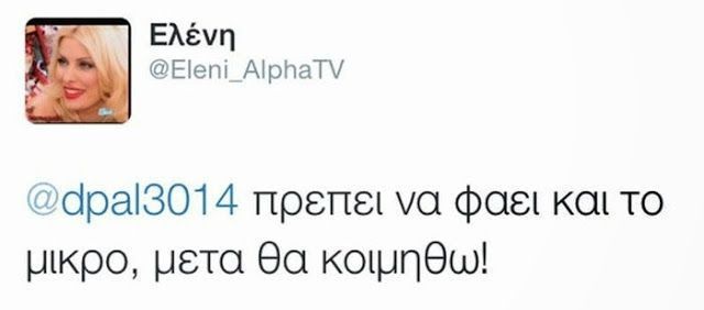 Γεμάτη ενέργεια, χαρά και με την ευτυχία να διαγράφεται στο πρόσωπό της επέστρεψε τη Δευτέρα 11 Μαΐου η Ελένη Μενεγάκη στην εκπομπή της, μετά τη γέννηση της κόρης της. Η παρουσιάστρια χθες το βράδυ είχε μια ολονύχτια συζήτηση με τους followers της στο twitter, αφού όπως θα δείτε και παρακάτω απαντούσε κανονικά σε όλα τα μηνύματα και τις ευχές των θαυμαστών της, ενώ τους αποκάλυψε ότι μένει ξύπνια για να ταΐσει το μωρό της!