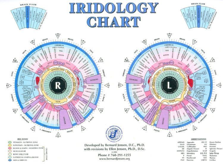 Για παράδειγμα, με βάση αυτό το διάγραμμα, η κηλίδα της εικόνας είναι ένας δείκτης των τοξινών στην κύστη. Τα καλά νέα είναι ότι με τον καιρό, η ιατρική παρακολούθηση και τα κατάλληλα μέτρα για αποτοξίνωση, οι κηλίδες στην ίριδα θα μειωθούν σε μέγεθος και συχνότητα μέχρι να εξαφανιστούν τελείως, που σημαίνει ότι το πληγέν μέρος του σώματος έχει αποτοξινωθεί.