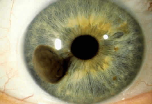 Το μελάνωμα της ίριδας είναι μια σπάνια αλλά σοβαρή κατάσταση που μοιάζει με την παραπάνω εικόνα.