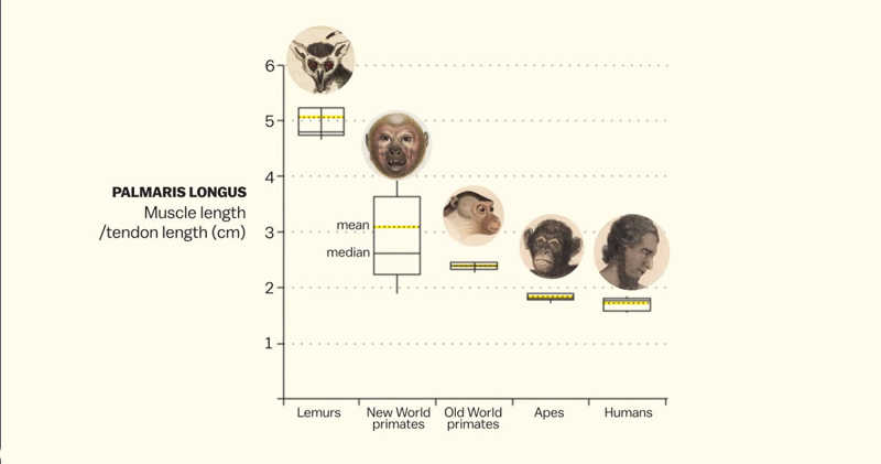 Αν ο μακρύς παλαμικός μυς βρίσκεται στο σώμα, σημαίνει ότι οι πρόγονοι τα θηλαστικά χρησιμοποίησαν τα μπροστινά άκρα για τις καθημερινές τους δουλειές συχνότερα.