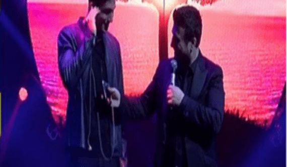 Μάλιστα, κάποια στιγμή σταμάτησε το τραγούδι και κάλεσε τον 18χρονο γιο του να ανεβεί στην πίστα. Αφού έβγαλε τα ακουστικά, του έδωσε το μικρόφωνο και ερμήνευσε ένα κομμάτι, κερδίζοντας το θερμό χειροκρότημα του κοινού.