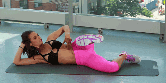 Ξαπλώστε στη δεξιά πλευρά σας με τα πόδια σας τεντωμένα, και τον δεξιό αγκώνα λυγισμένο έτσι ώστε το δεξί χέρι να στηρίζει το κεφάλι σας. Φέρτε το δεξί σας πόδι ελαφρώς προς τα εμπρός και λυγίστε το γόνατο περίπου 90 μοίρες. Φέρτε το αριστερό σας πόδι προς τα εμπρός, ώστε το πόδι σας να ευθυγραμμίζεται με τη μέση σας. Κρατώντας τους ώμους και τους γοφούς σας μαζεμένους, σηκώστε το αριστερό πόδι ακριβώς πάνω από το γοφό σας. Στη συνέχεια, ασκείτε τον κορμό σας καθώς φέρετε το αριστερό γόνατό σας στο στήθος σας. Σπρώξτε το πόδι προς τα έξω.