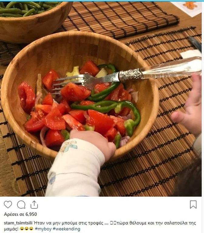 Η ίδια απαθανάτισε τον γιο της να προσπαθεί αν φάει από τα πιάτα στο μεσημεριανό τραπέζι και «ανέβασε» τη φωτογραφία στην προσωπική της σελίδα στο instagram γράφοντας: «Ήταν να μην μπούμε στις τροφές …. ??τώρα θέλουμε και την σαλατούλα της μαμάς! ??? #myboy #weekending». Μάλιστα πρόσφατα αποκάλυψε πώς την αποκαλεί ο σύζυγός της. «Πιτίτα με φωνάζει… Είχαμε βρει κάποια στιγμή κάτι παιδικές κασέτες και σε μια από αυτές η μαμά μου με ρωτούσε «πώς σε λένε;». Εγώ δεν μπορούσα να πω Σταματίνα και έλεγα «Πιτίτα με λένε!». Έτυχε να το ακούσουμε μαζί με τον Θέμη και από τότε μου έμεινε…».